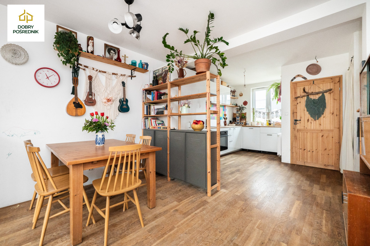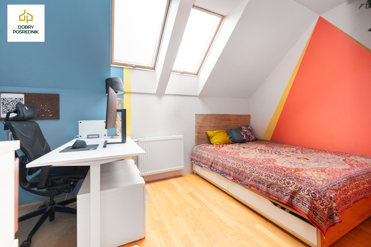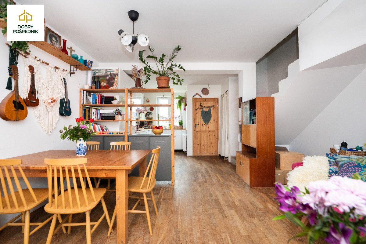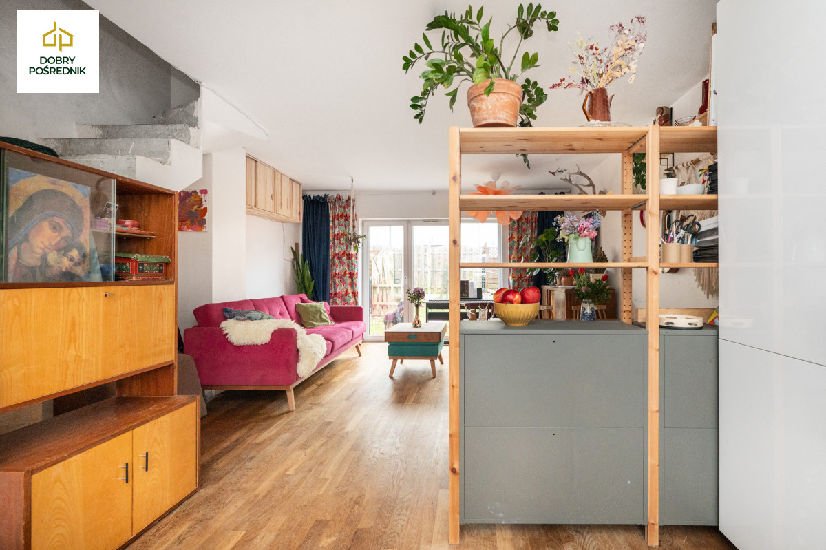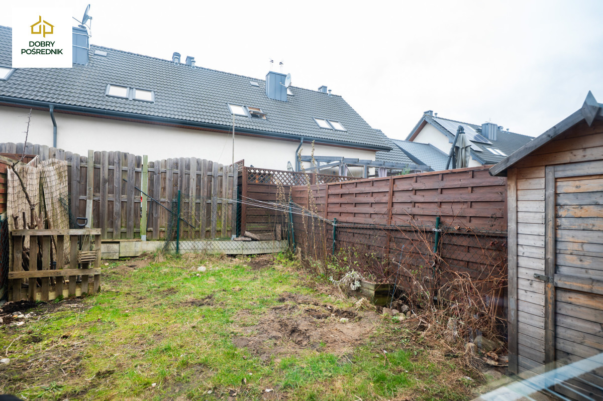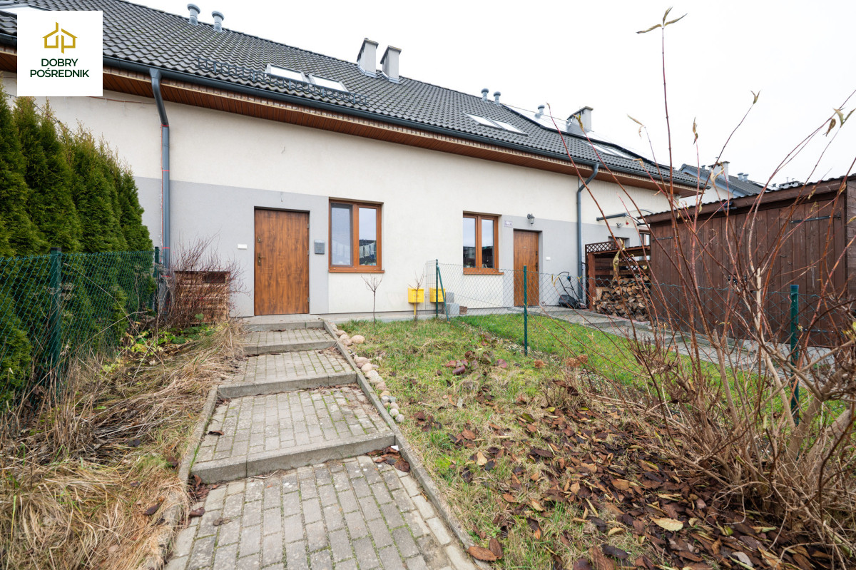 Na sprzedaż dom w zabudowie szeregowej. W skład parteru wchodzi salon z oknem z którego mamy wyjście na taras oraz ogród połączony z otwartą kuchnią, również na parterze mieści się pomieszczenie gospodarcze(z możlwością zrobienia WC), przedpokój z szafą, na pierwsze piętro prowadzą nas schody do własnej aranżacji. Na piętrze znajdują się dwie sypialnie, z dwóch sypialni prowadzi nas korytarz do łazienki z prysznicem. Dodatkowo na ostaniej kondygnacji znajduje się strych z możliwością adaptacji na przestrzeń użytkową. W całej nieruchomości położona jest deska, cyklinowana.