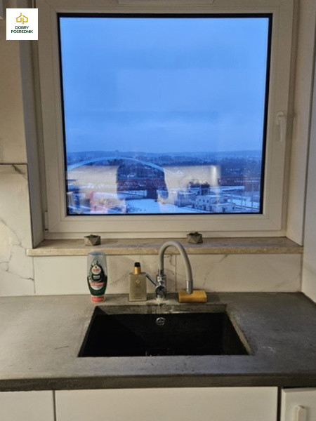 - zabudowę kuchenną z cichym domykiem, betonowym blatem i granitowym zlewem,
