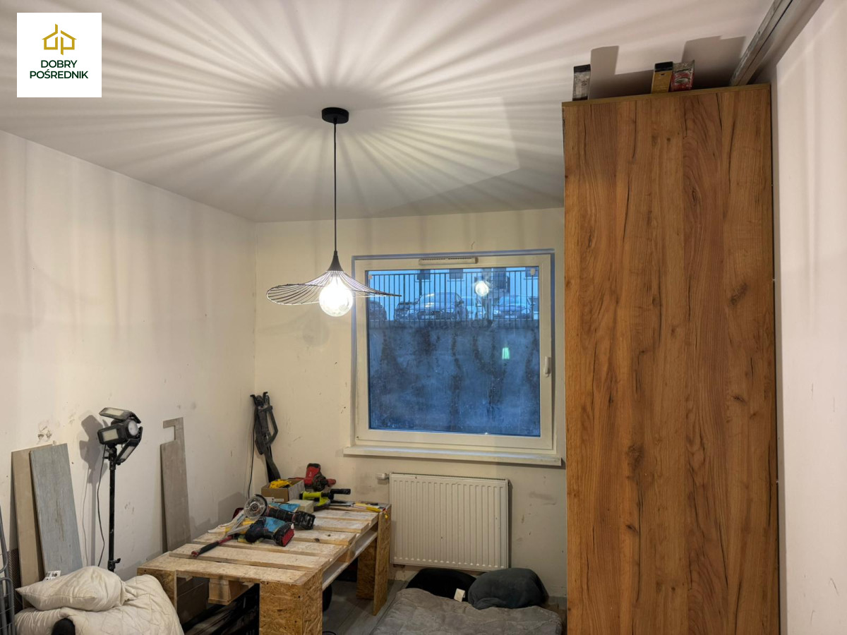 W mieszkaniu rozpoczęto prace remontowe - sufity oraz większość ścian zostały wyszpachlowane i pomalowane, w sypialni wykonano nową podłogę, a łazienka jest ukończona w około 75%. Wszystkie materiały niezbędne do dokończenia remontu zostaną przekazane nowemu właścicielowi, co pozwala na sprawne wykończenie wnętrza według własnej koncepcji i bez dodatkowych zakupów.