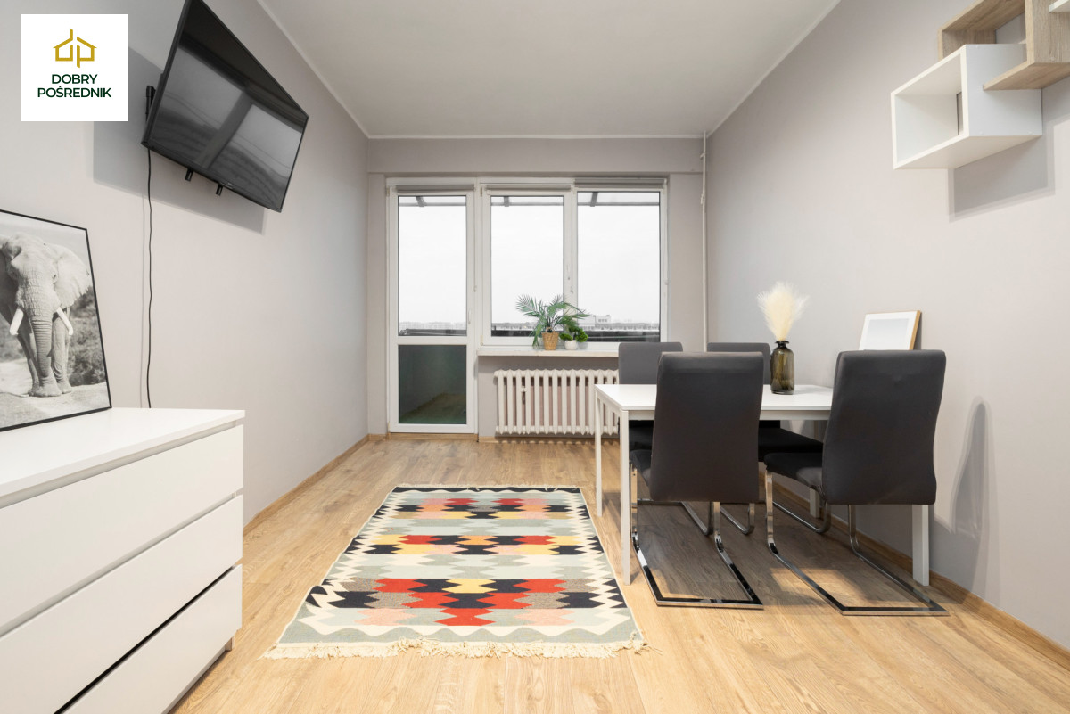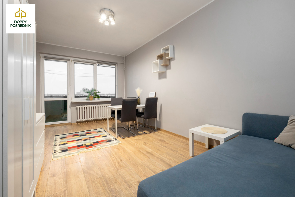 - Funkcjonalny układ obejmuje jasny pokój dzienny z wyjściem na balkon, kuchnię, łazienkę oraz przedpokój