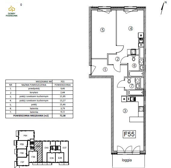 - Loggia / balkon z ekspozycją zapewniającą dobre nasłonecznienie