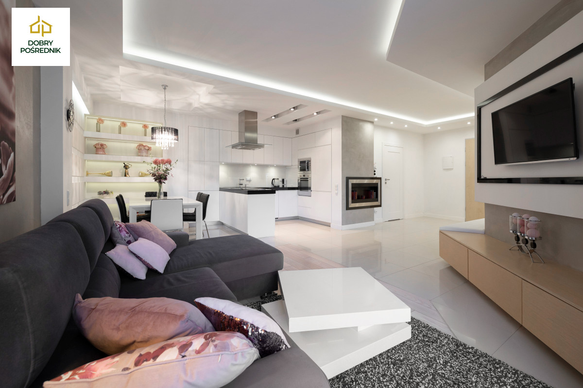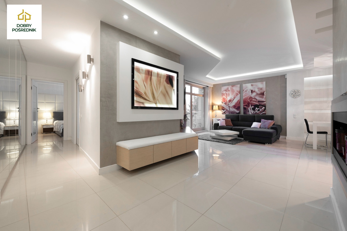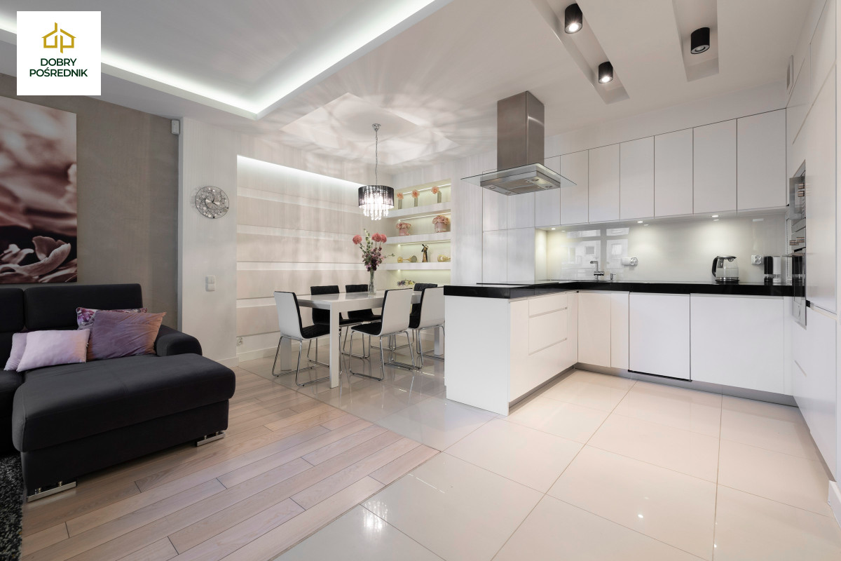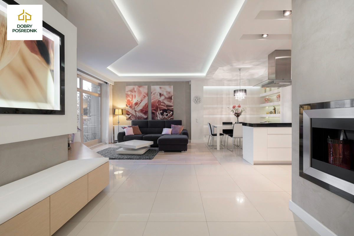 - Jasne, funkcjonalne wnętrza z podwieszanymi sufitami i wysokiej klasy materiałami