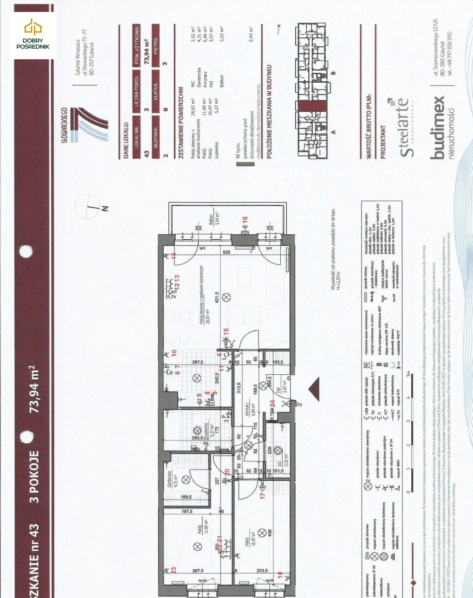 - Cena za m2: 23 594,59 PLN