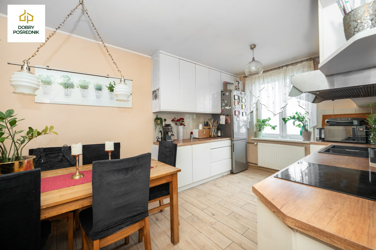 Nieruchomość o łącznej powierzchni 58m2, składa się z trzech niezależnych pokoi, dużej kuchni z jadalnią, łazienki. Dużym autem jest bezpośrednie zejście z mieszkania do piwnicy, którą można zaaranżować według własnych potrzeb.
