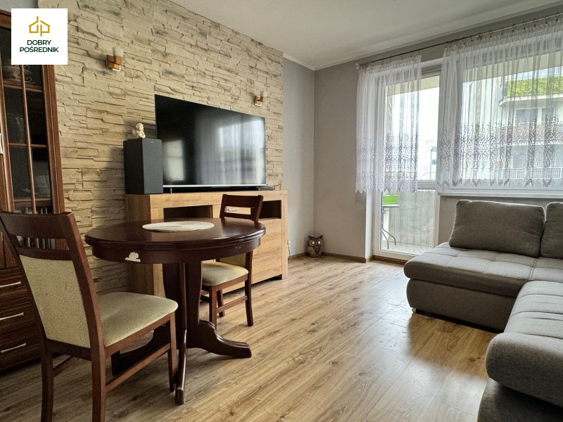Dwupokojowe mieszkanie o powierzchni 45 m2 położone jest na parterze w czteropiętrowym budynku bez windy. Lokal składa się z salonu z aneksem, sypialni, łazienki z wanną oraz przedpokoju z pojemną szafą. Lokal jest w pełni wyposażony.