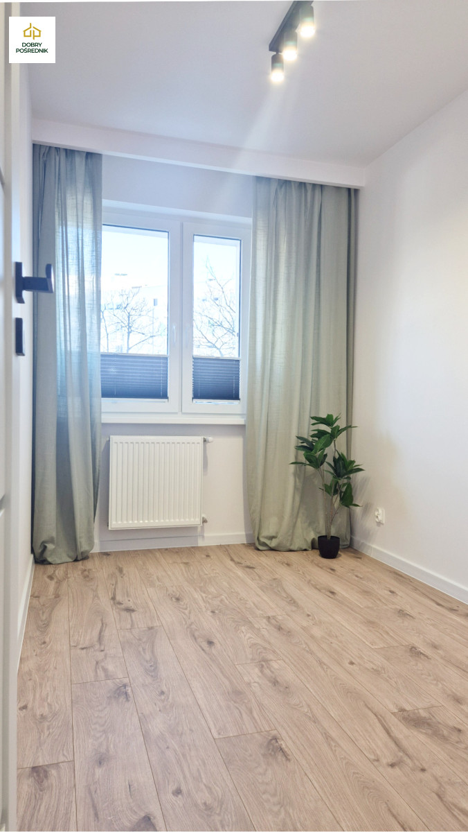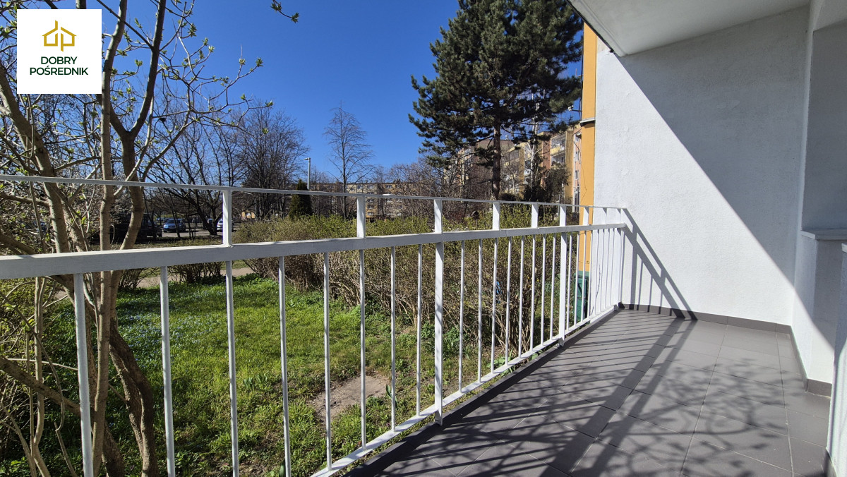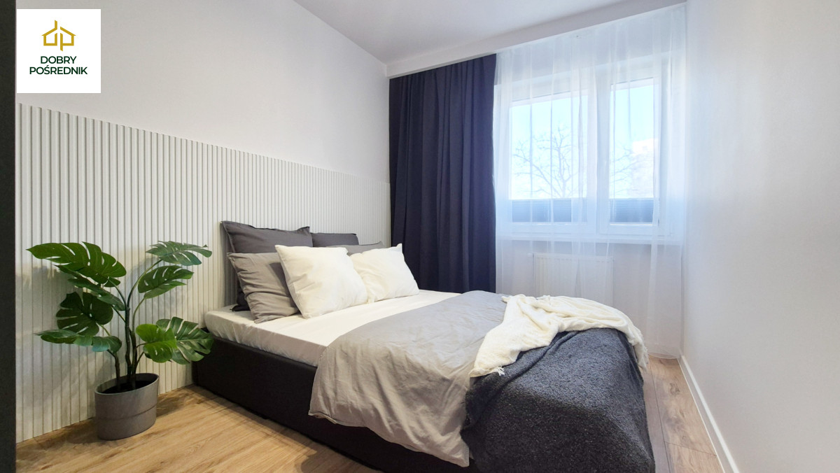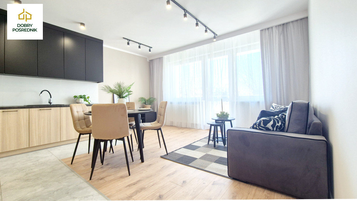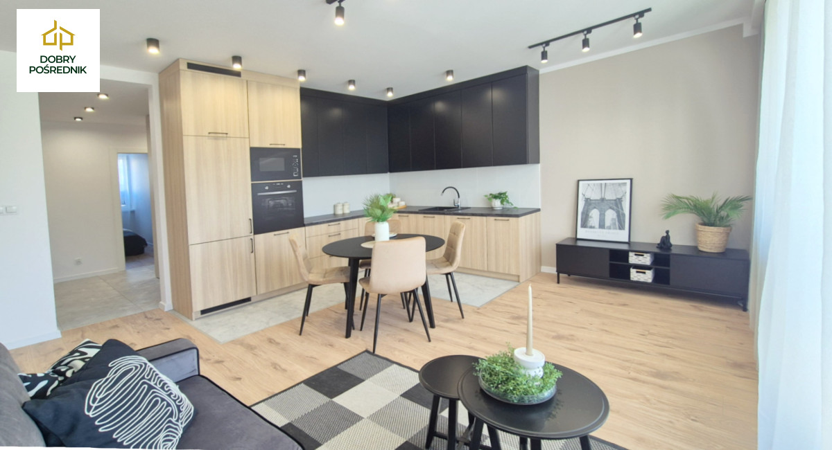 Dwustronne słoneczne mieszkanie o łącznej powierzchni 49.5 m2, składa się z salonu z aneksem kuchennym i dwóch oddzielnych pokoi, łazienki, oraz przedpokoju, a także dużego balkonu.
