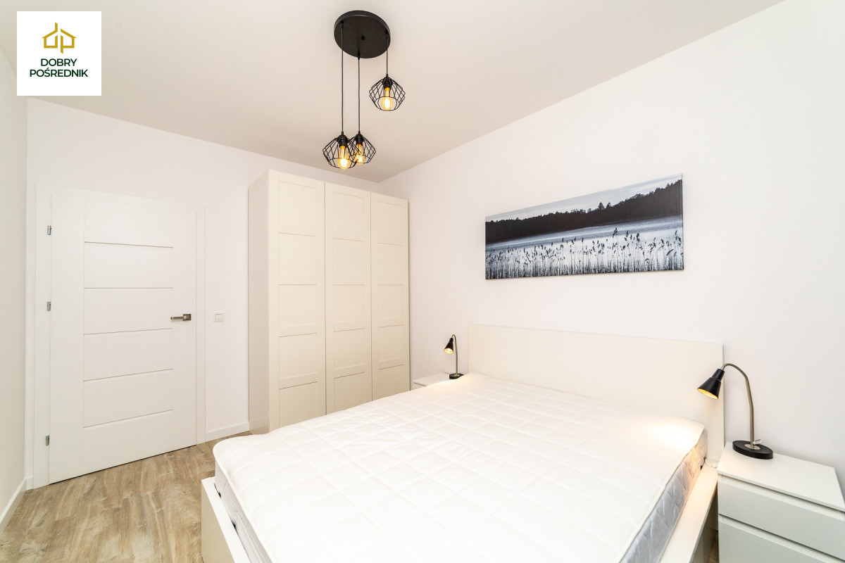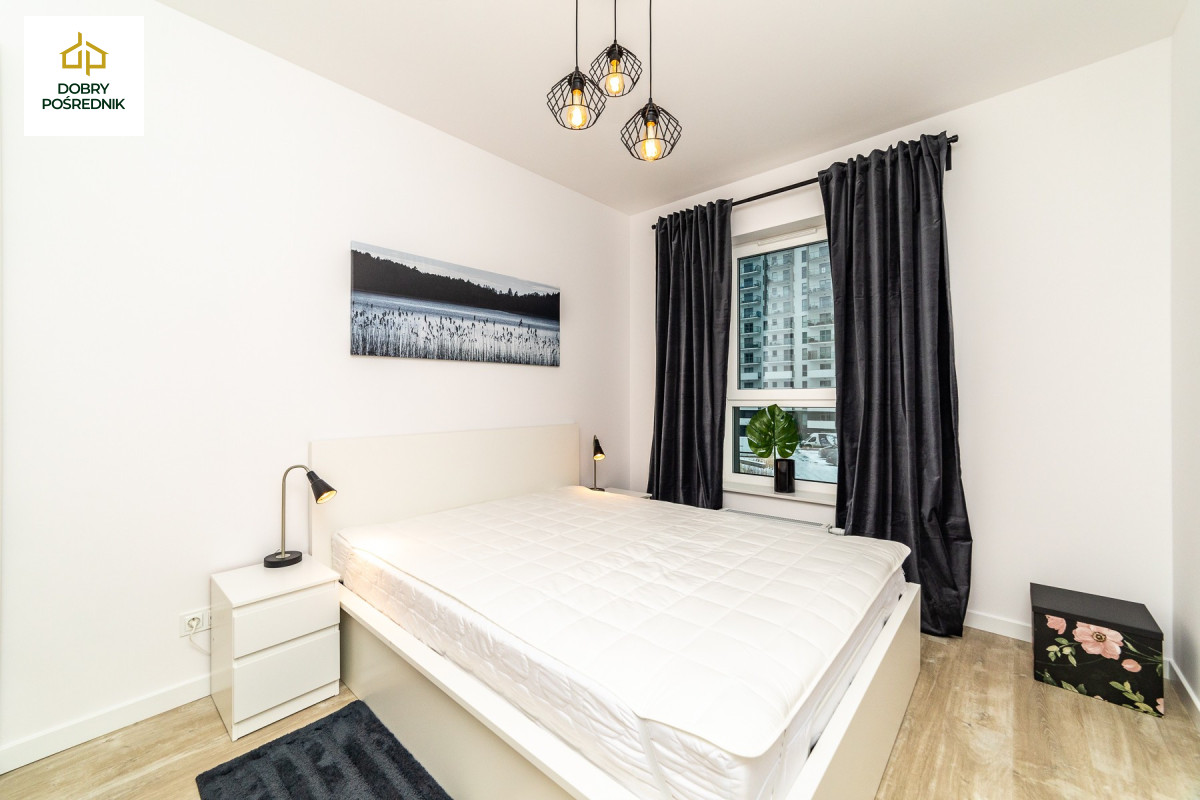 Apartament o łącznej powierzchni 45m2. Składa się z przestronnego salonu z aneksem kuchennym z wyjściem na duży słoneczny balkon. Ustawna sypialnia z dużym łóżkiem, biurkiem oraz szafą pod zabudowę. Łazienka z wanną i prysznicem w jednym. Przedpokój z pojemną szafą robioną na wymiar. Apartament w stanie bardzo dobrym, wykończony wysokiej klasy materiałami, gotowy do zamieszkania lub pod wynajem długo jak i krótkoterminowy. W cenie mieszkania zostaje całe wyposażenie (płyta indukcyjna, piekarnik, zmywarka, lodówka, pralka, TV.)