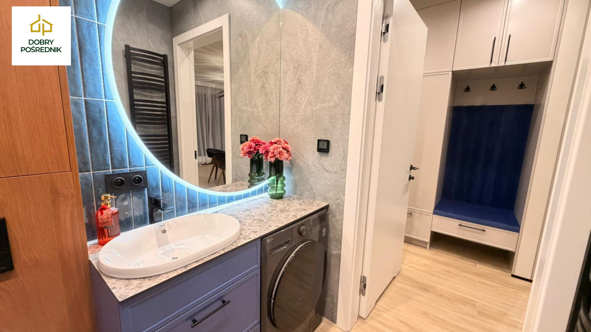 Mieszkanie jest w pełni umeblowane i gotowe do natychmiastowego zamieszkania lub wynajmu.