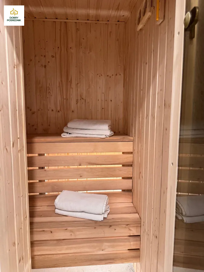 - Luksusowa strefa relaksu z wanną z hydromasażem, prysznicem i prywatną sauną